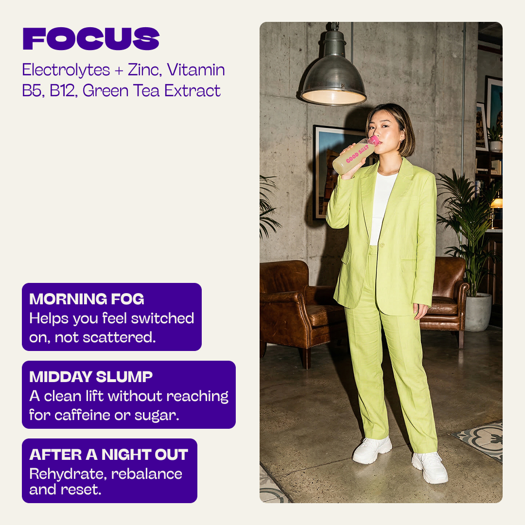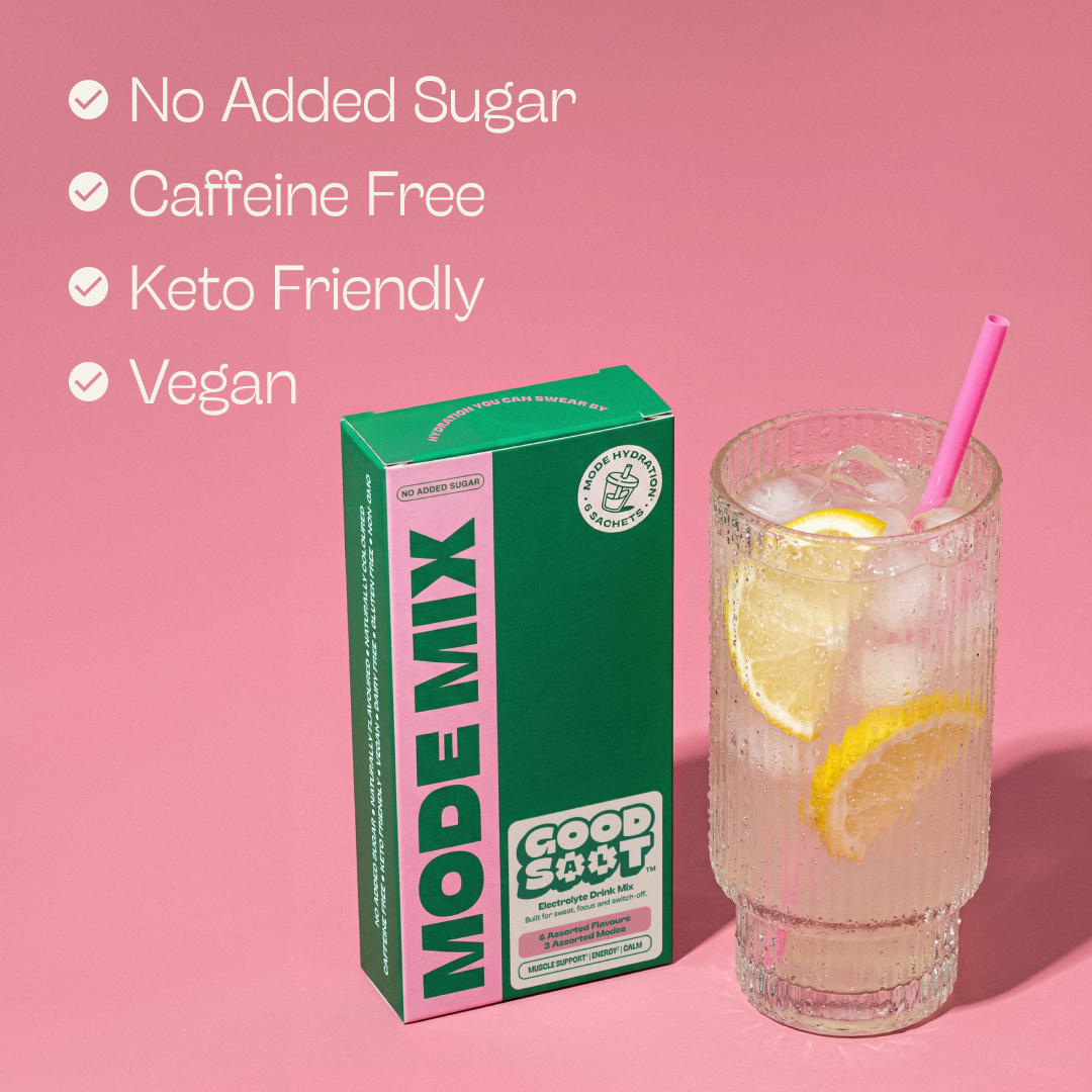 Electrolytes to hydrate properly.Then functional ingredients matched to the moment. No added sugar. No artificial colours. Vegan. Just better hydration, whatever version of you shows up.
